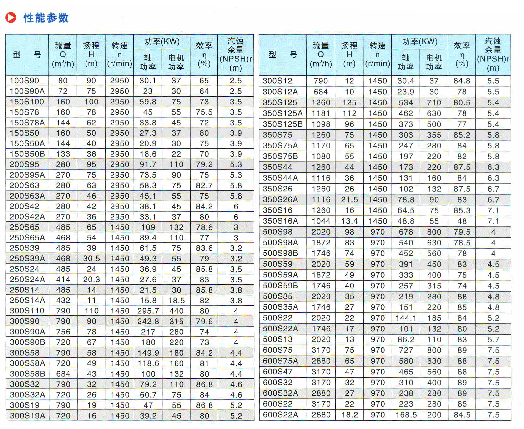 水泵參數說明